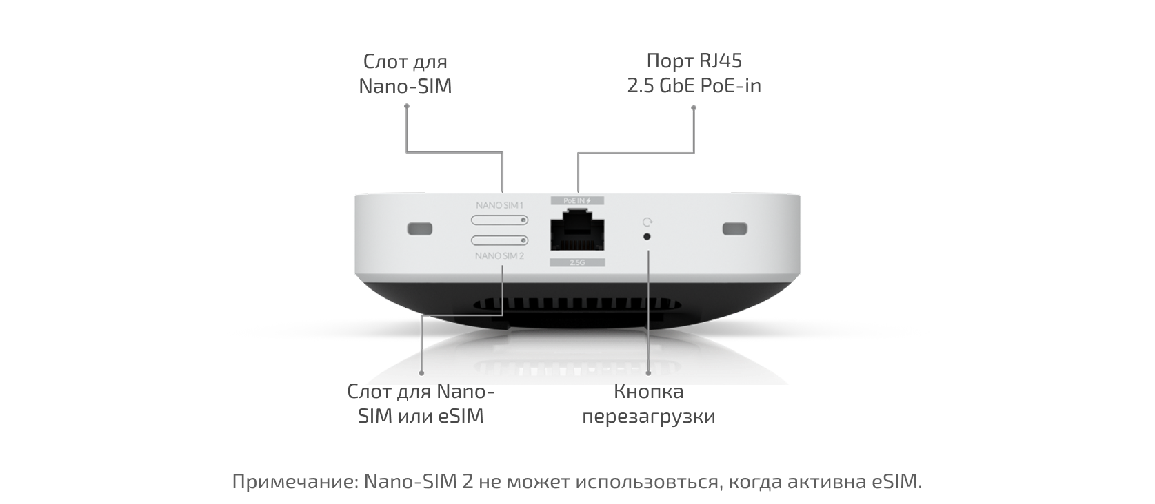 UniFi 5G Max поддерживает работу с двумя SIM-картами, предлагая гибкие варианты конфигурации. Устройство работает в режиме Dual SIM Single Standby (DSSS), при котором активна только одна SIM-карта одновременно: