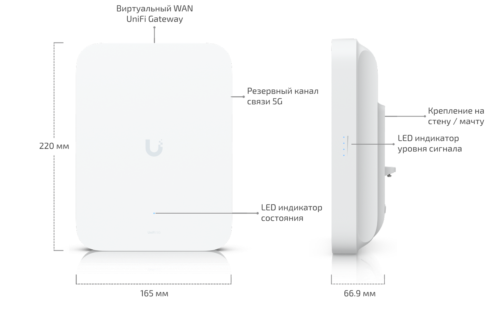 UniFi 5G Max Outdoor специально разработан для уличной установки и отличается от UniFi 5G Max двумя ключевыми особенностями.