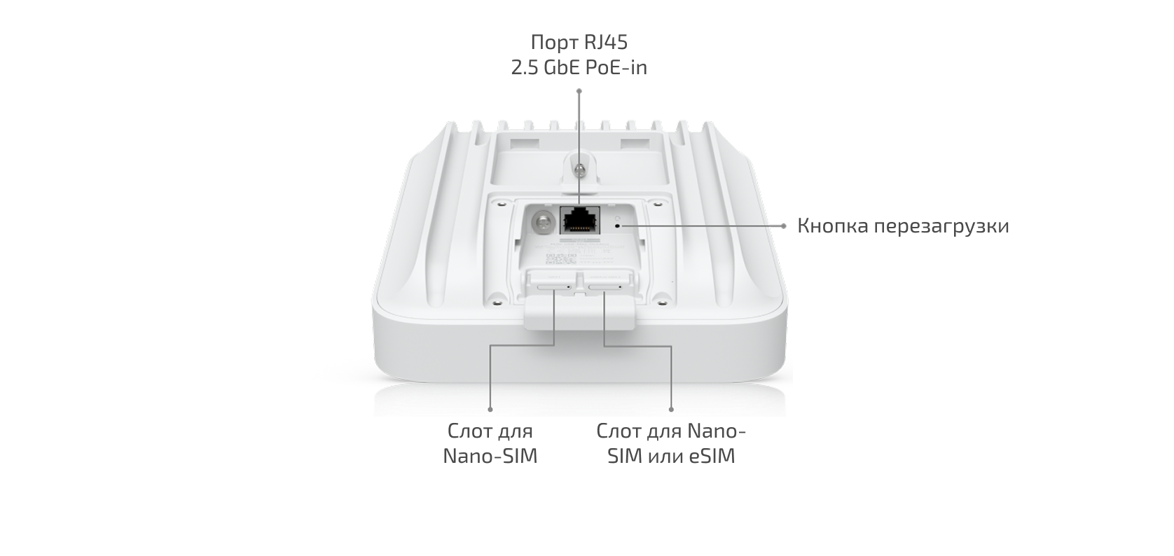 UniFi 5G Max Outdoor поддерживает работу с двумя SIM-картами, обеспечивая гибкость подключения. Устройство функционирует в режиме Dual SIM Single Standby (DSSS), при котором одновременно активна только одна SIM-карта.