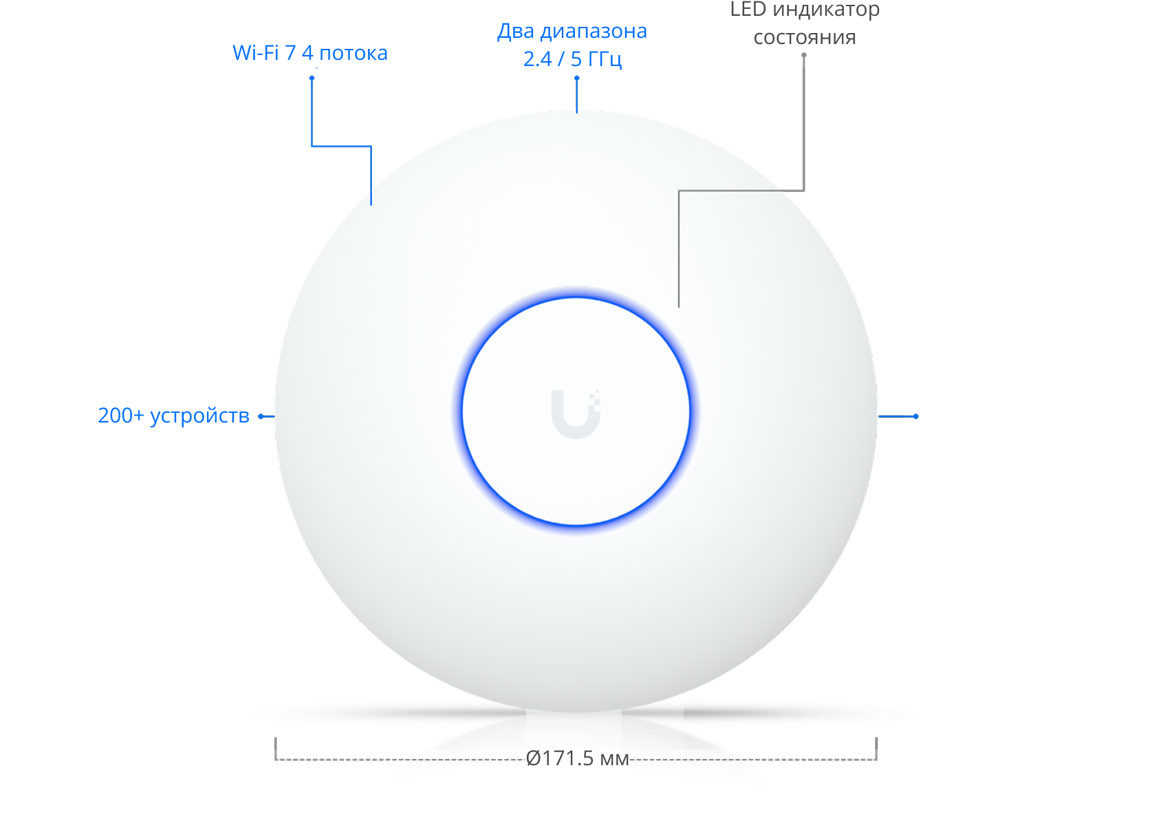 UniFi U7 Lite объединяет мощь Wi-Fi 7, продуманный дизайн и простоту установки — универсальное решение для современной беспроводной сети.