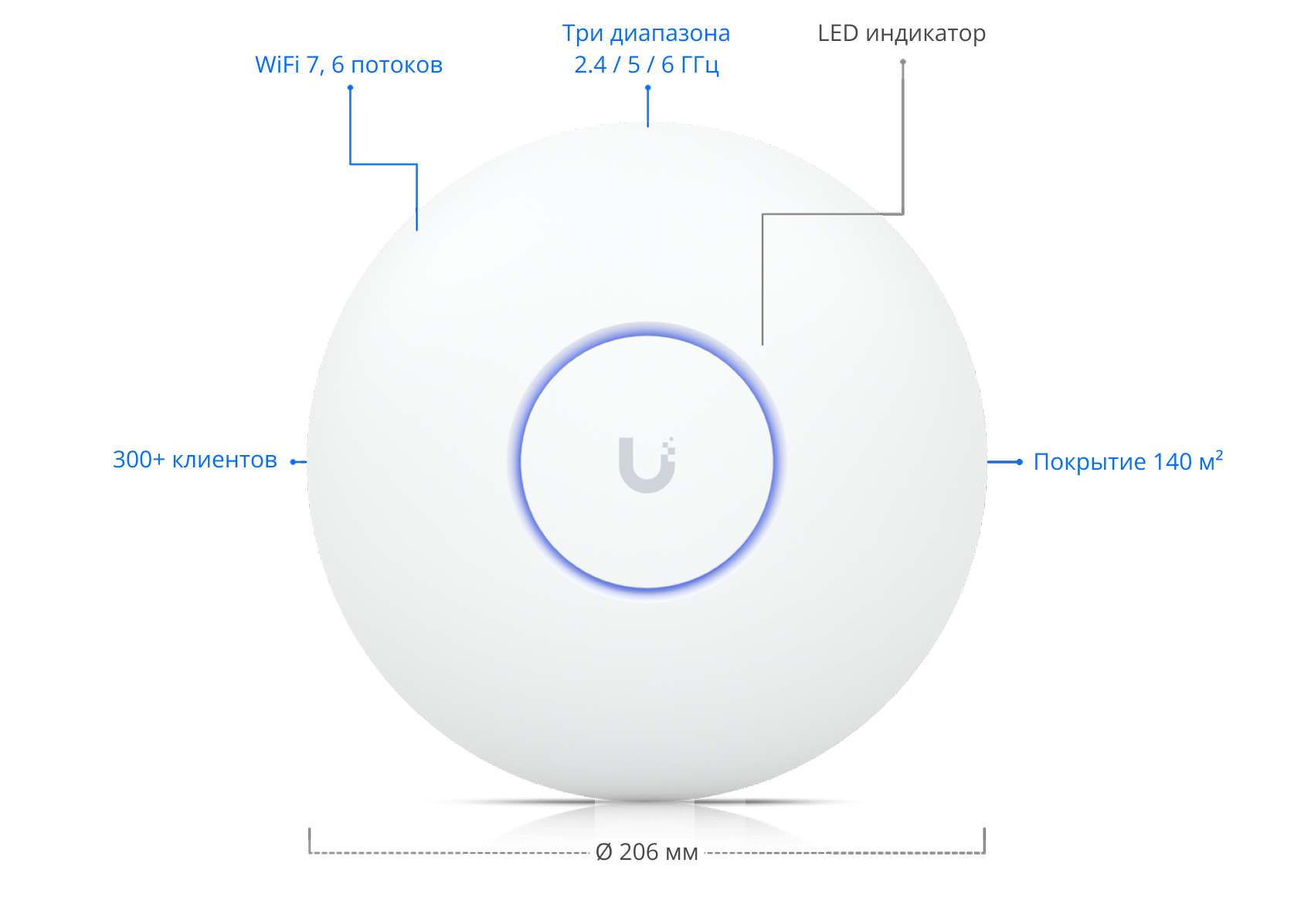 UniFi U7 Pro — это передовая точка доступа WiFi 7, обеспечивающая высокоскоростной беспроводной доступ в больших и требовательных средах.