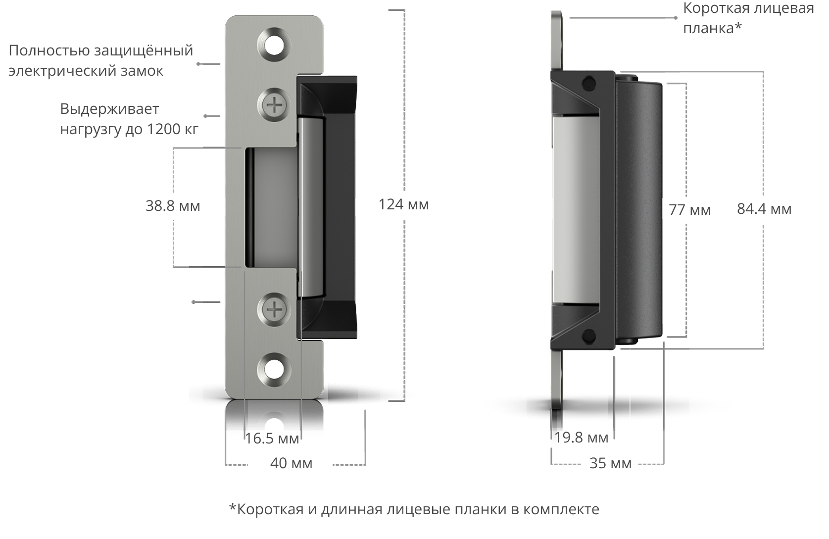 | Габариты (короткая лицевая планка) | 124 × 32 × 3 мм |