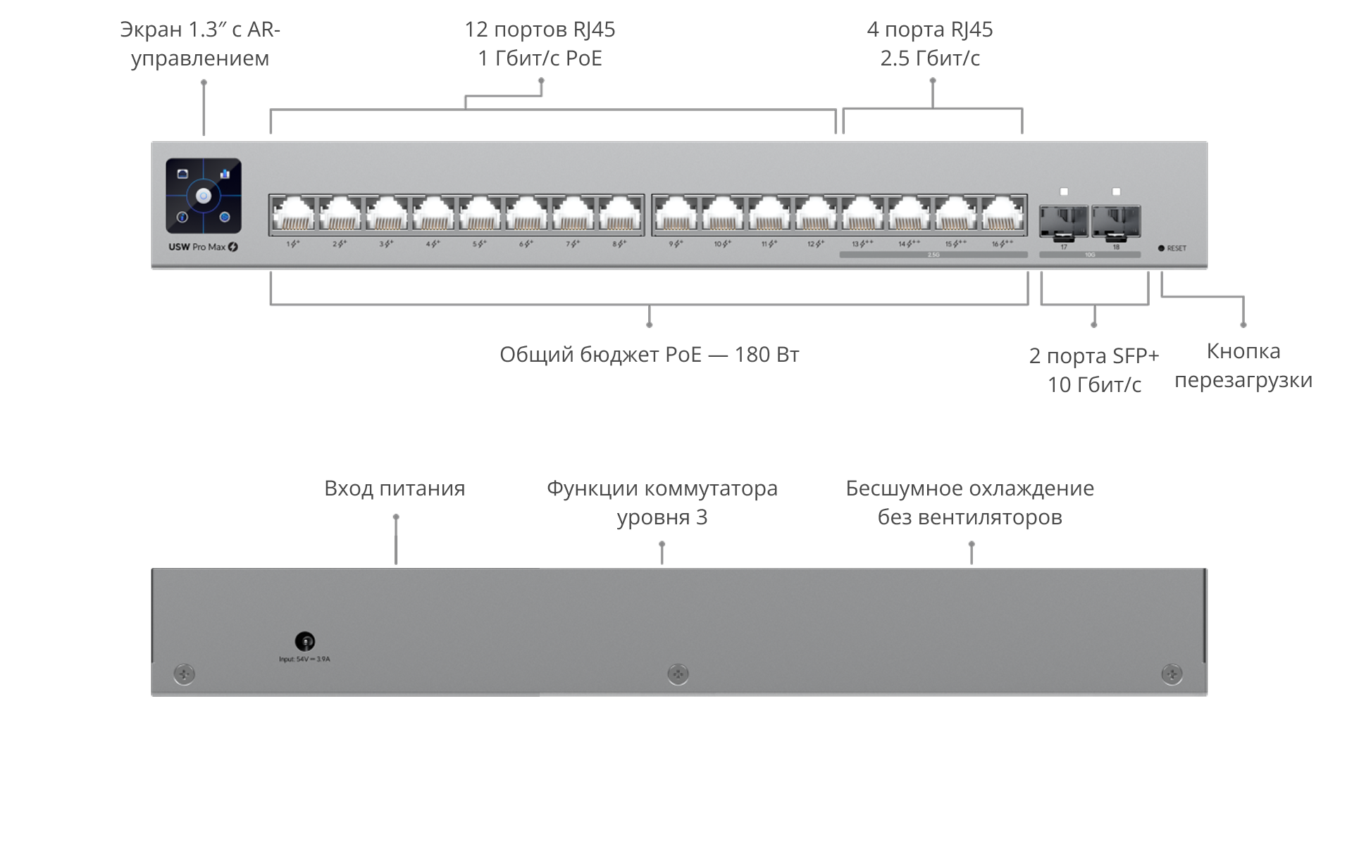 Коммутатор Etherlighting™ уровня 3 с 16 портами, поддержкой 2,5 Гбит/с, выходом PoE++ и различными в...
