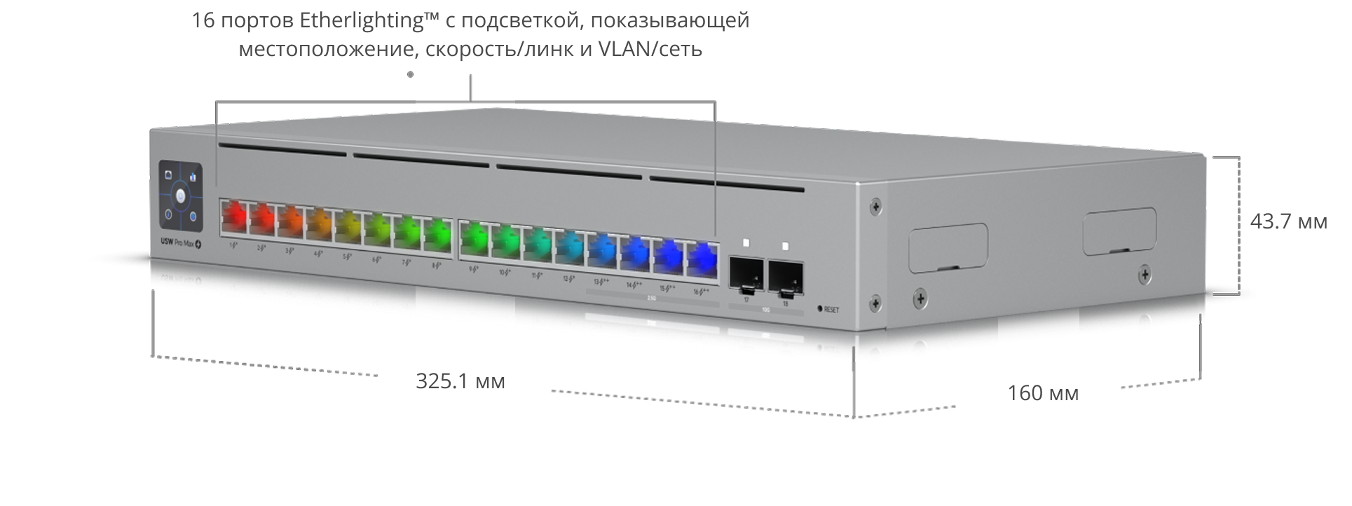 *Рекомендуется использовать сетевые кабели UniFi Etherlighting для достижения оптимальной яркости.
