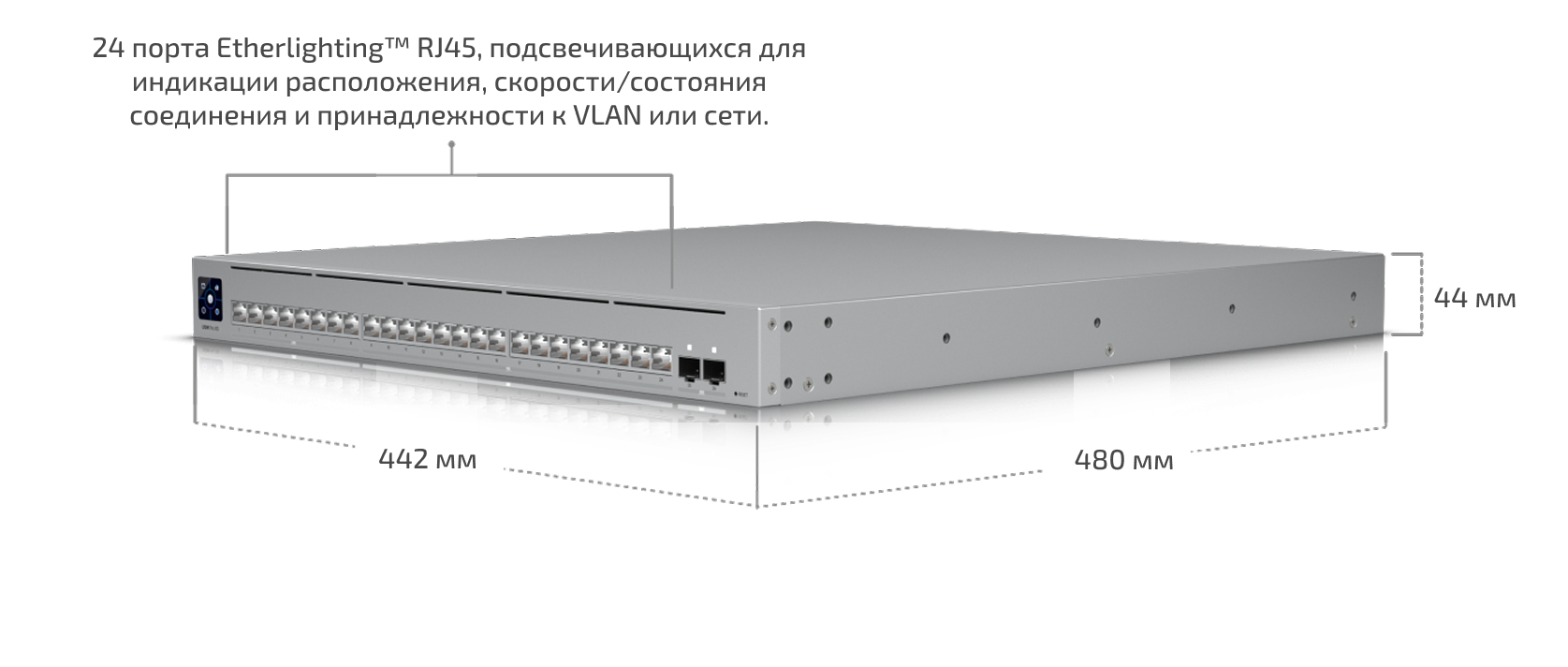- Etherlighting™: подсветка портов с отображением скорости, VLAN и статуса соединения.