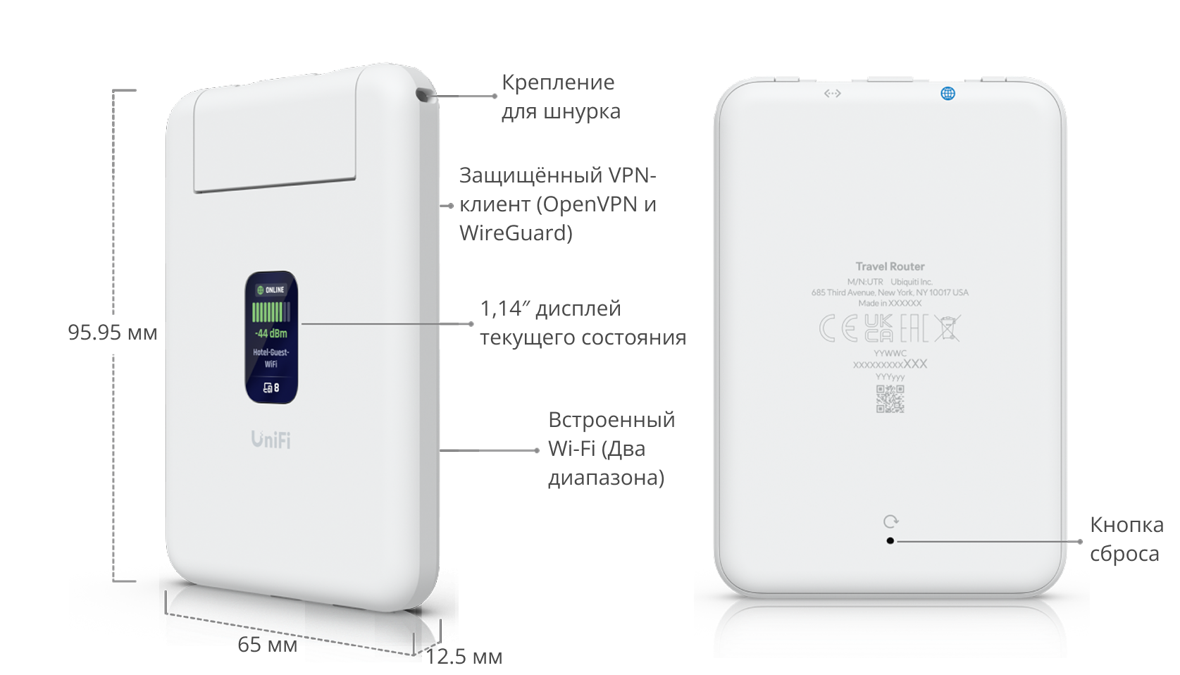 Устройство позволяет использовать привычную экосистему UniFi в отелях, офисах и любых локациях с доступом к интернету. Встроенный Wi-Fi и питание через USB-C делают UTR удобным инструментом для мобильной и удалённой работы.
