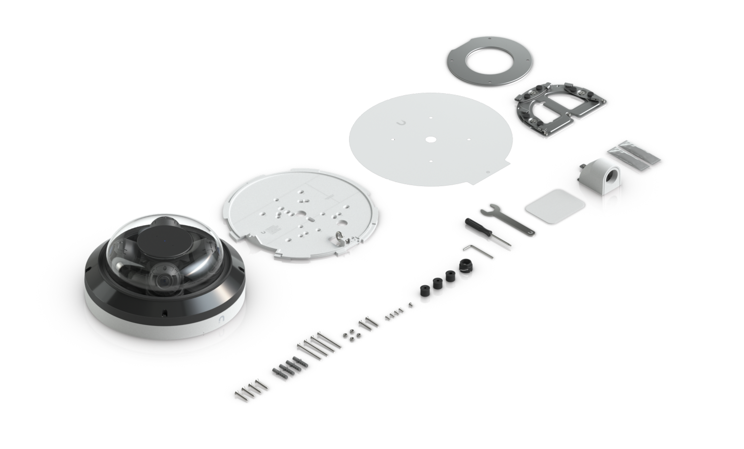 AI Multi Sensor 4 поставляется с потолочным креплением и поддерживает дополнительные варианты установки: на столб, стену, угол или подвес. Для монтажа на потолке камера совместима с креплениями T-bar, распределительными коробками 3.5″ и 4″ круглого типа, 4″ квадратными коробками, одноместными коробками и европейскими розеточными коробками, что обеспечивает широкие и гибкие возможности установки.