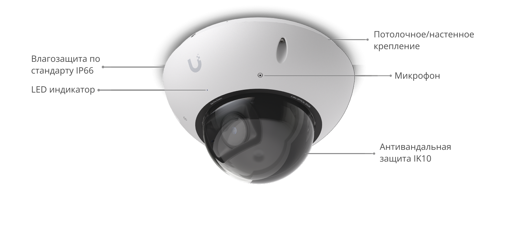UniFi G6 Pro Dome подходит для установки внутри помещений и на улице, обеспечивая детализированное изображение при любых условиях и полную совместимость с экосистемой UniFi Protect.